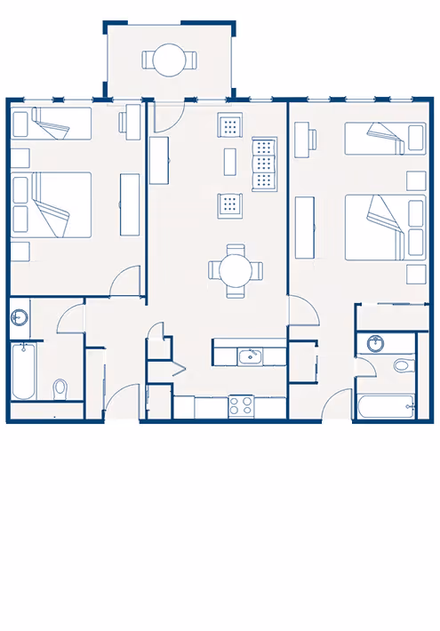Larger family and friend groups enjoy the spacious comfort of a two bedroom suite. A sizeable living room with dining area, and two separate bedrooms offer different spaces to balance together time as well as private moments, and keep everyone happy during the entire stay. The two bedroom suites can lock-off into a separate one bedroom suite and studio suite.